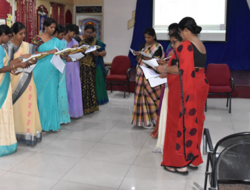 The role of phonetics in our daily life and the need of it in the classroom were highlighted. Teachers were instructed to teach the phonetics in a simple manner starting from the text book. Teachers can enhance their way of pronouncing a word, vocabulary and communication through various online courses. Teachers can assess the students’ reading by conducting reading tests. If the students went wrong in pronunciation teachers were asked to do spot and immediate correction, so that students can rectify their mistakes immediately. Teachers were also asked to check their spelling, pronunciation and their communication before delivering it to the students. The seminar ended with an activity where the resource person shared a link to the teachers and they were asked to attend the questions given in the link to check their proficiency in the English language. It was really a thought provoking seminar, where teachers had a valuable time with the resource person and clarified the doubts regarding the subject and also the classroom management.
